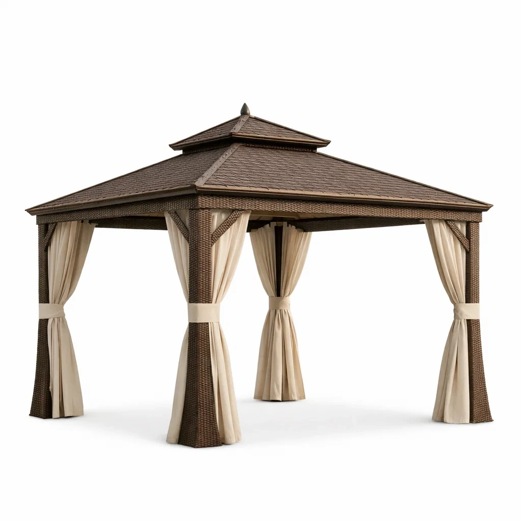 Fonctions : Protection contre le soleil et la pluie, rideaux amovibles.